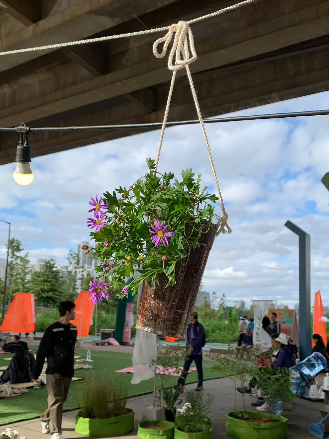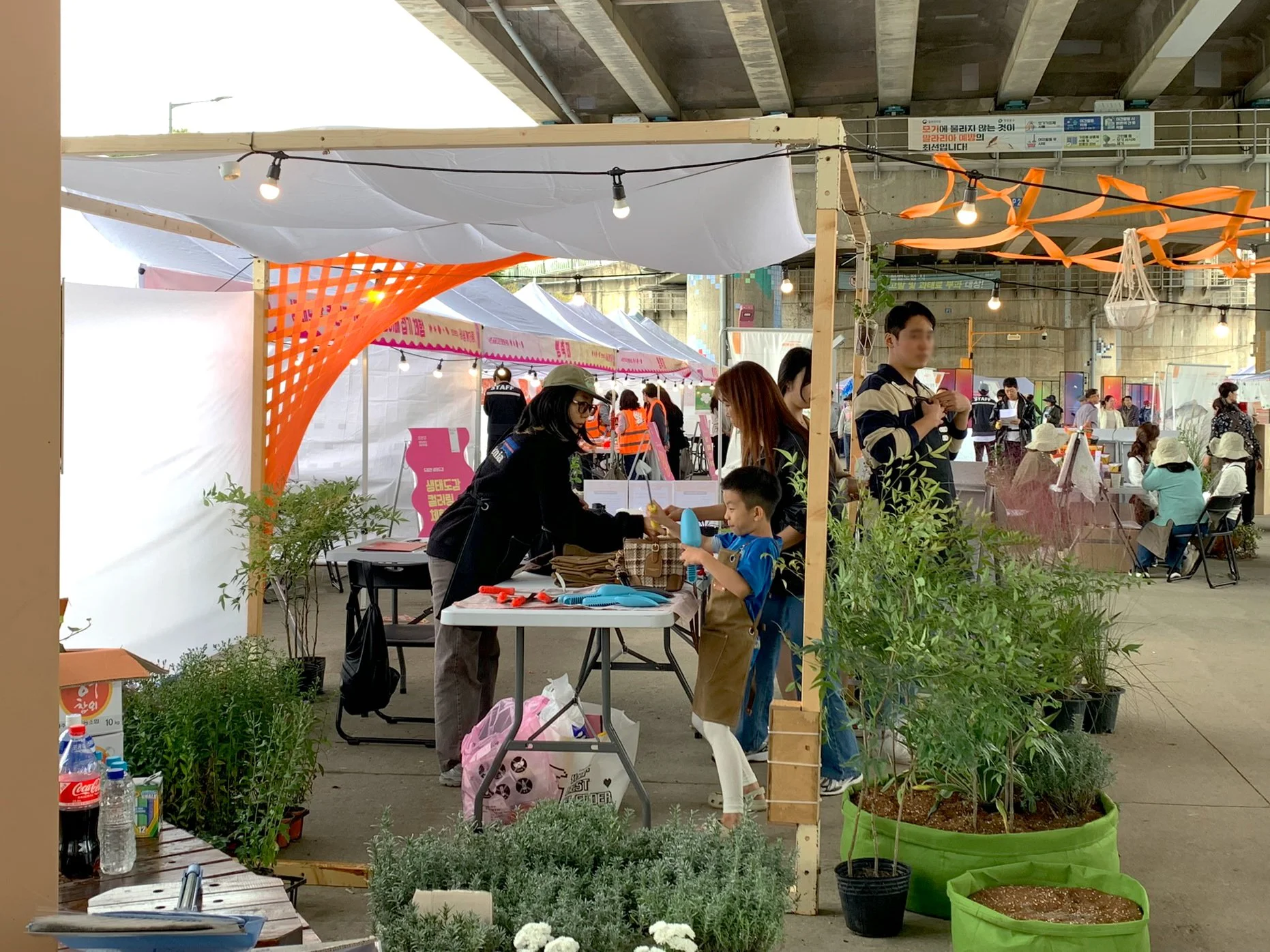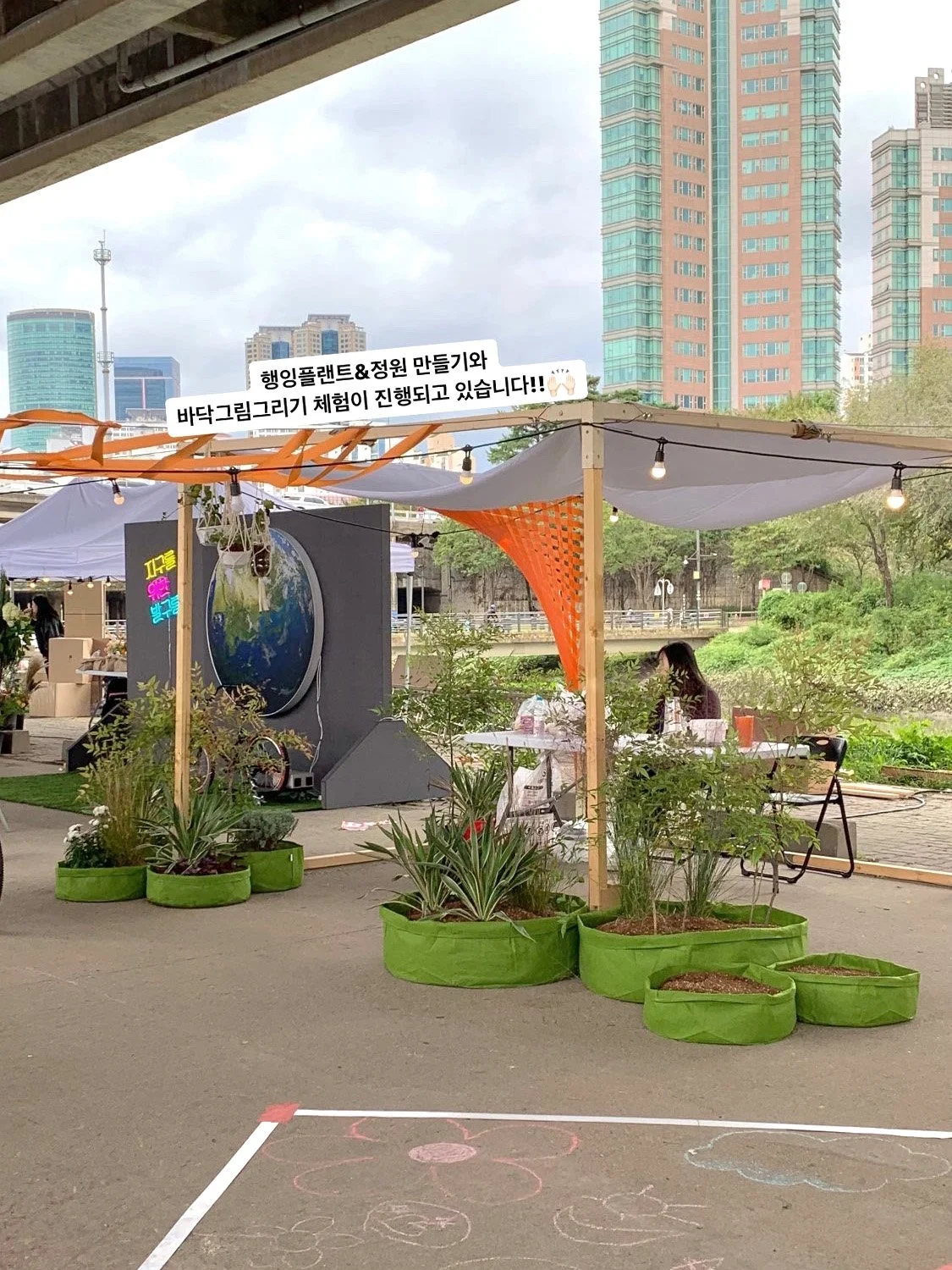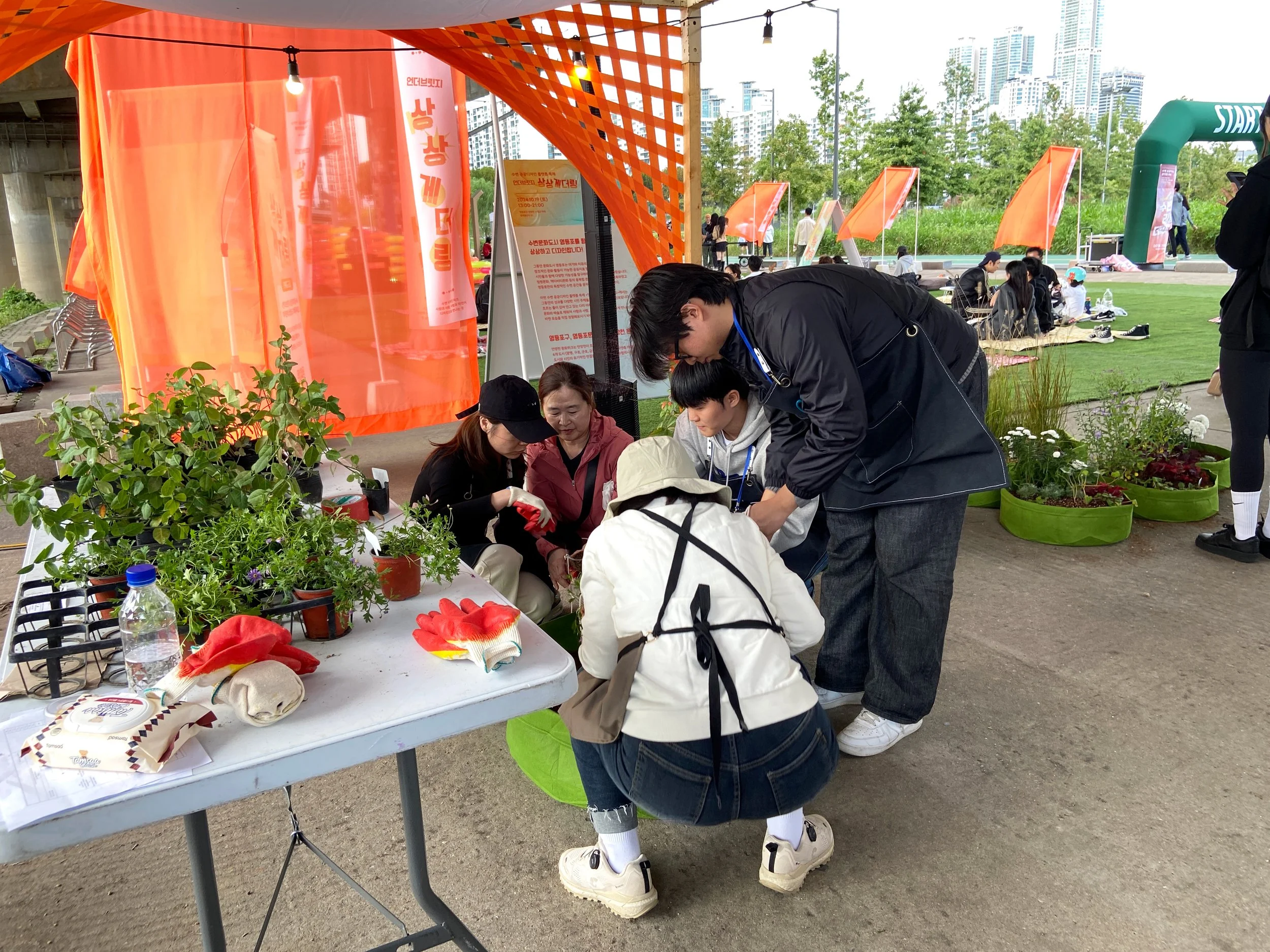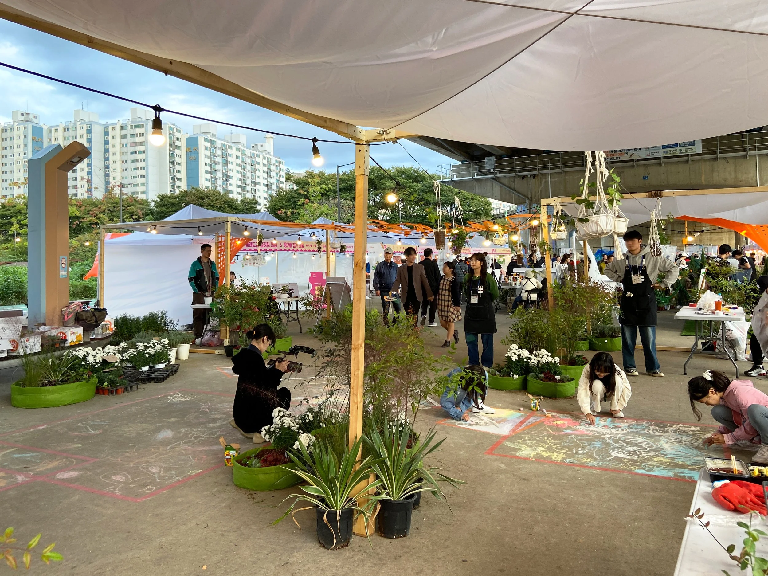 시민들과 함께 만들어가는 참여정원을 주제로 부스를 디자인하고, 프로그램을 기획·운영하였다. 프로그램은 크게 세 가지로, 1)부직포 화분에 식물을 직접 심고 꾸며볼 수 있는 함께하는 정원만들기, 2) 재활용품을 화분으로 업사이클링하여 행잉플랜트로 전시하는 업사이클 정원, 3)팝업 가든의 바닥에 원하는 식물을 그려 꾸며볼 수 있는 분필 바닥 정원 프로그램을 진행하였다.
